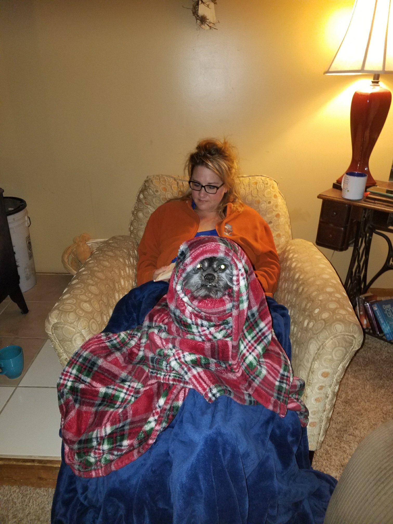 A cozy fire would make this complete but, alas, I am too tired (lazy) to start one so I shall sit here with a blanket instead.